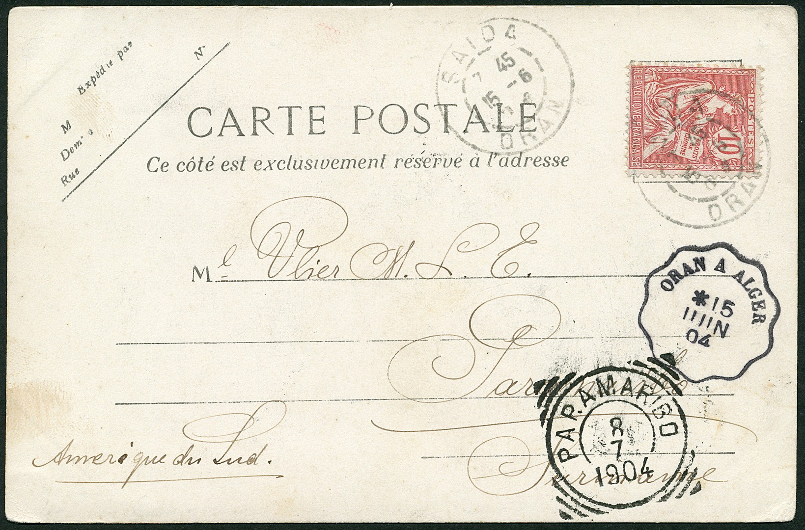 Incoming Mail. Algerije. Prentbk. uit Bone (Constantine) van 24-6-1902 en Oran 15-6-1904 naar Paramaribo. Zeldzame herkomst!