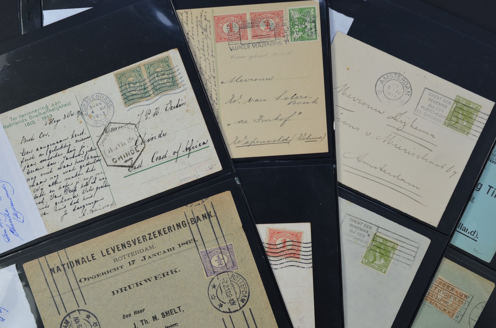 POSTHISTORIE, Machinestempels op 16 betere poststukken gefrankeerd met emissies Vürtheim en/of Bontkraag, w.o. proefstempel, interessante data, verticale afstempelingen, Bontkraag na geldigheid toch geaccepteerd, enkelfrankeringen, bestemmingen o.a. Chinde), etc. en alle afstempelingen in pracht- of luxe kwaliteit