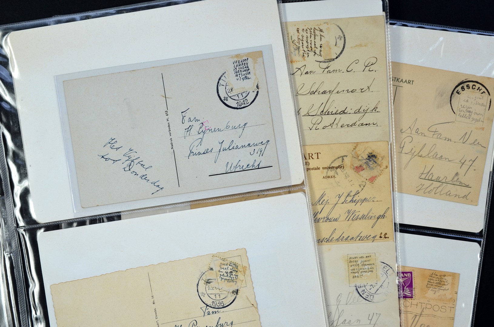 POSTHISTORIE, 20 prentbriefkaarten met verwijderde zegels waaronder allerlei geschreven berichtjes (Z.O.P.)