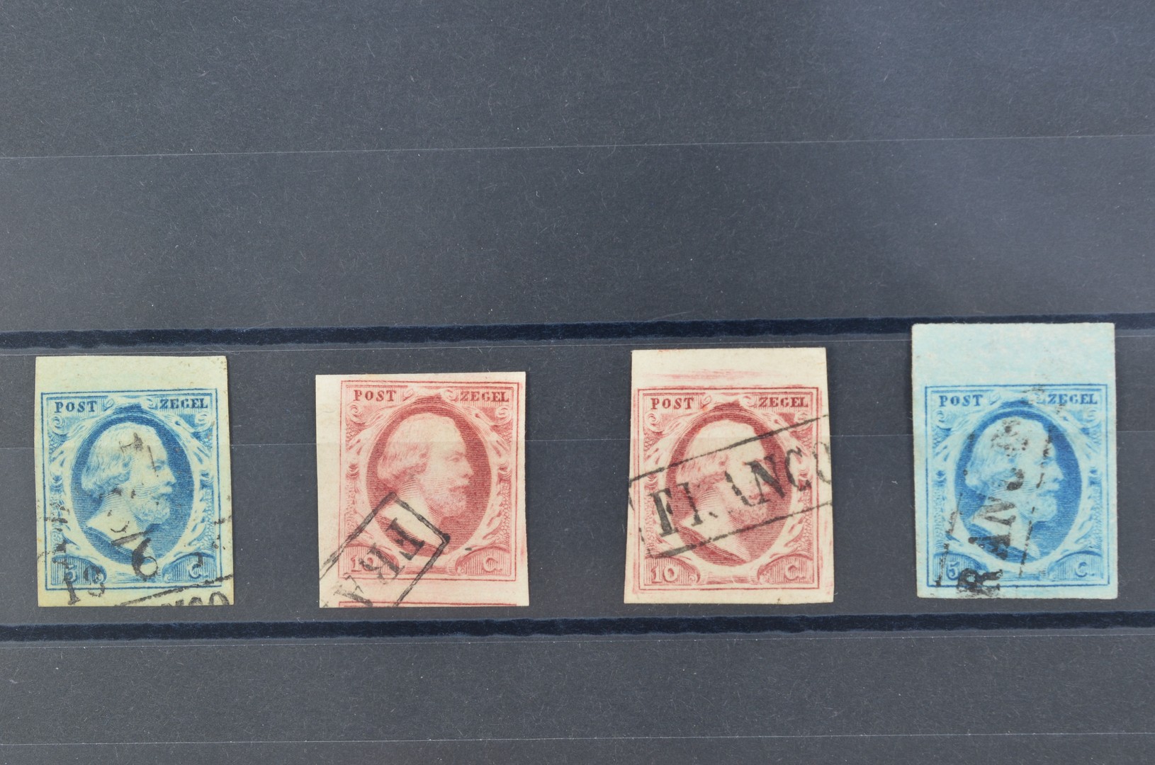 EMISSIE 1852, 5 cent nrs. 1d-Pl.II-54 en 1r-Pl.VI-54, alsmede 10 cent nrs. 2l-Pl.VI en 2o-Pl.IX-59, alle vier pracht randstukken
