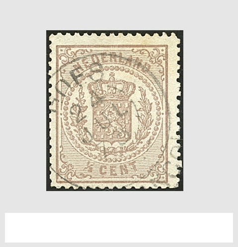 ½ Cent Rijkswapen in lijntanding 14 kleine gaten nr. 13A, prachtex. met afstempeling Goes 24-7-1873. Attest Vleeming (2017) ? 1125