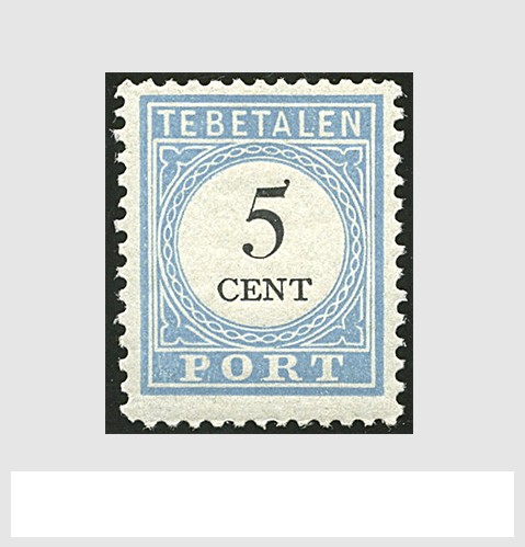 5 Cent port emissie 1881 in kamtanding 12½ : 12, type II nr. P6BII, postfris prachtex. met in gom als gebruikelijk enkele authentieke zwarte puntjes. Attest Vleeming (2017) ? 135