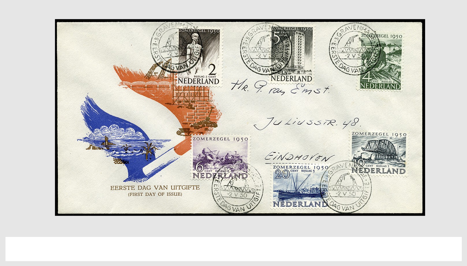 FDC's, E1, 2, 4, 13 en 14, keurig beschreven prachtex.