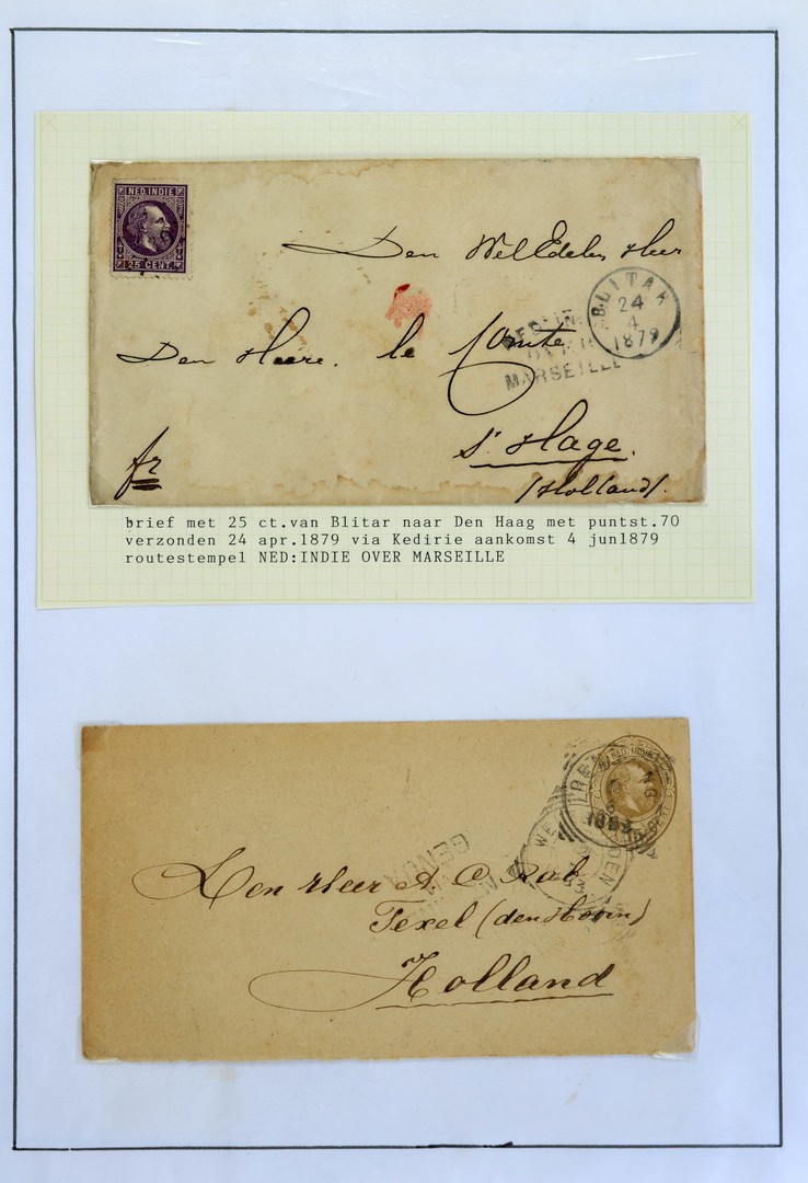 NED.- INDIË POSTHISTORIE, 8 voorzijden van dienstbrieven waarop dienstzegels, ca. 25 poststukken 1879-1948 w.o. als as. groot rondstempel ´Marine Post Kantoor Batavia / No. 4´, en een aandeel uit 1926