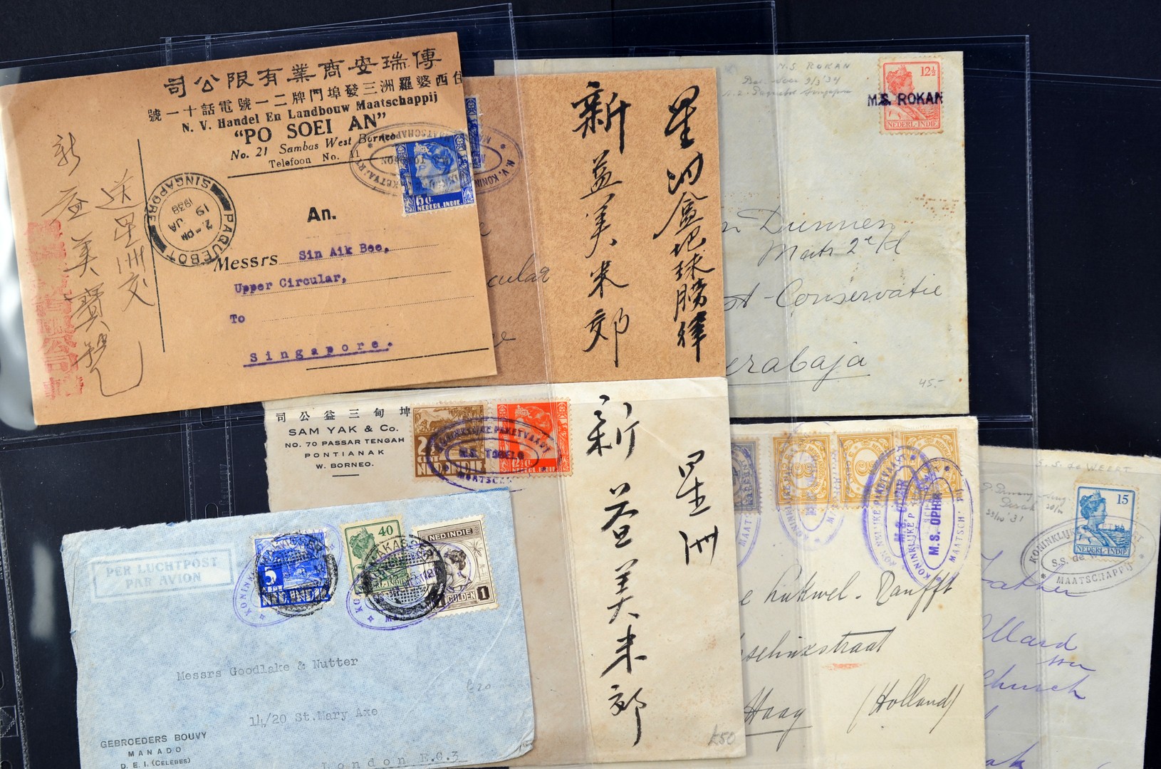 NED.- INDIË POSTHISTORIE, 7 Poststukken in gevarieerde kwaliteit met KPM-stempels w.o. M.S. Rokan (naam), M.S. Toba (ovaal) en M.S. Tobelo (ovaal)
