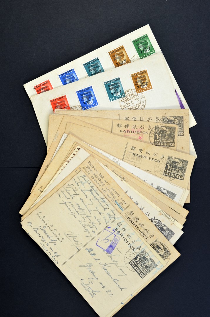 JAPANSE OCCUPATION & REPUBLIK INDONESIA 1945-49, postcards, 2 philatelic but nice covers and some stamps including a lot of Sumatra 0122