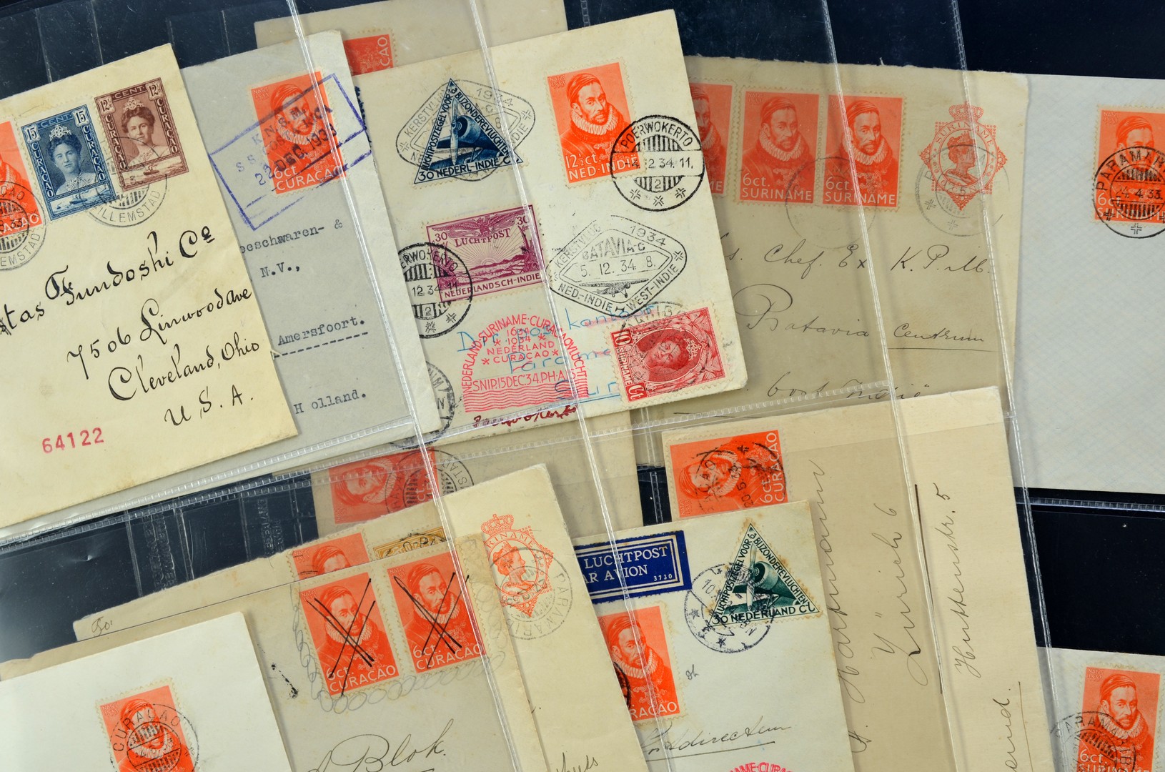 CURAÇAO & SURINAME, 13 gevarieerde poststukken gefrankeerd met Willem van Oranje