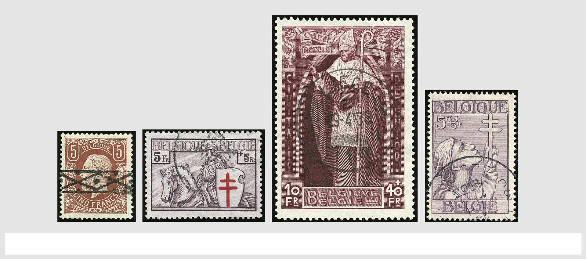 BELGIË, gebruikt Mi. nrs.19, 34 met roulettestempel, 333/41, 342/43, 366/72, 386/92 en 940, alle in mooie kwaliteit