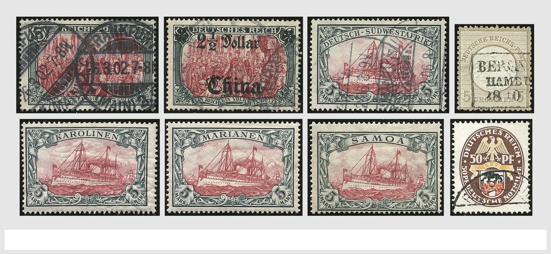 DUITSE RIJK 1872-1945, Duitse Koloniën, Bezetting W.O.-I, Danzig, Memel en Saar gebr./ongebr. op oude albumbladen, wb. vele betere nrs. en series, echter vele ex. zitten erg vastgeplakt. Desondanks een mooie koop met zeer hoge cat. waarde!