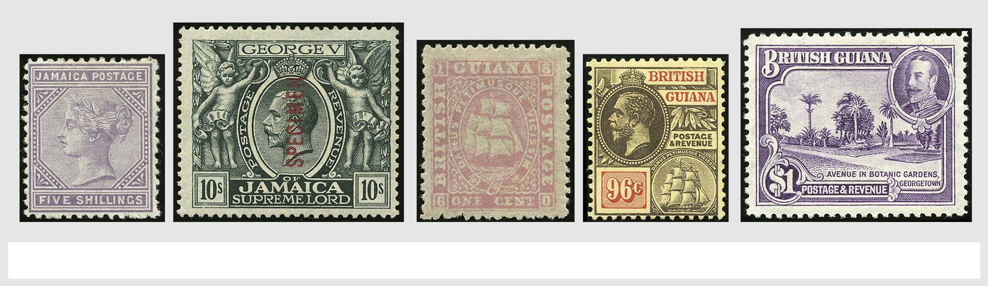 ENGELSE KOLONIËN, Jamaica en Brits Guyana 1860-1965, o/*/** verzameling op albumbladen, met een mooie afd. 1e emissie van Brits Guyana, verder div. betere nrs. en series, en een collectie 'War Tax' van Jamaica met variëteiten