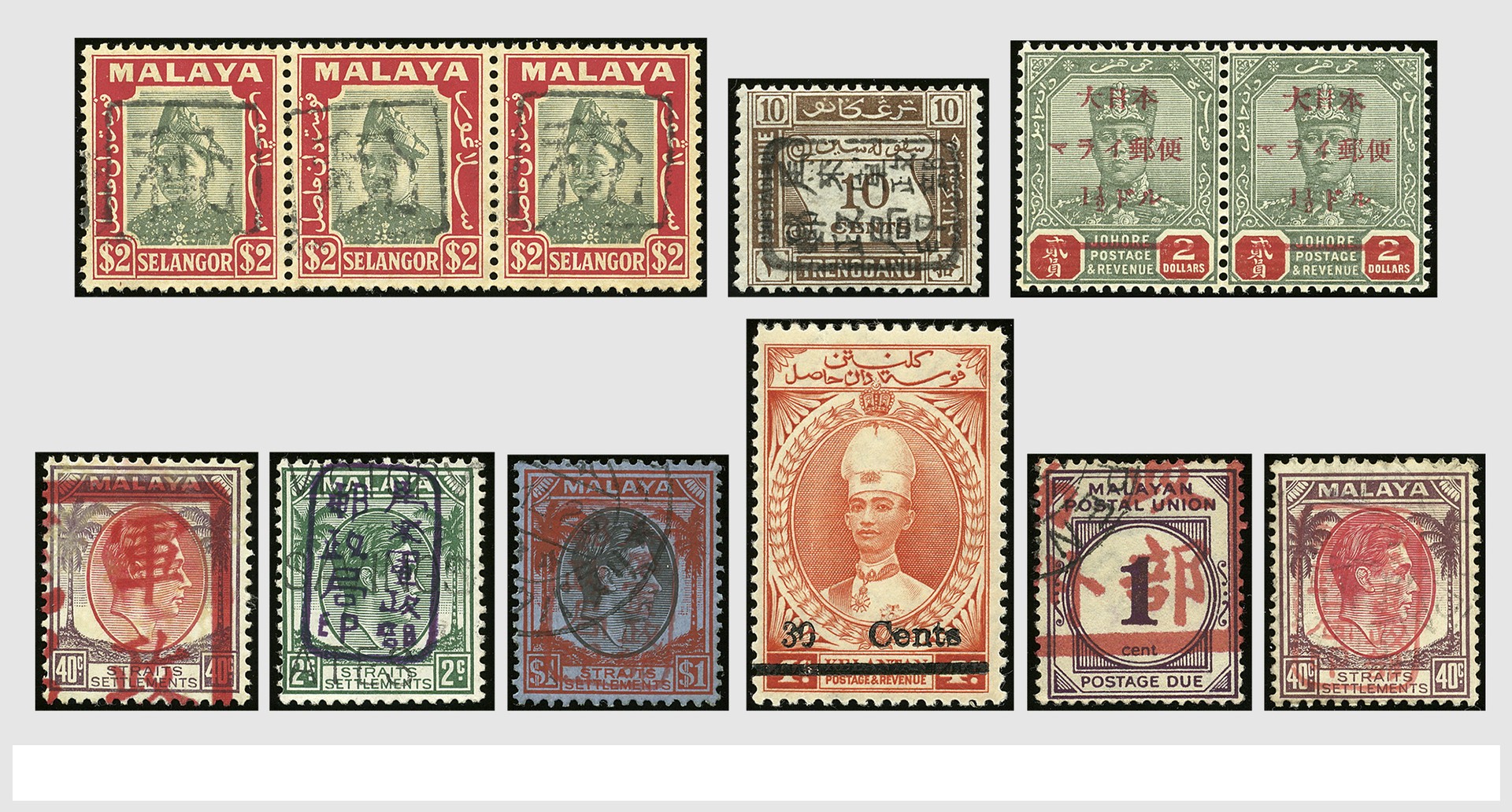 ENGELSE KOLONIËN, Japanse Bezetting Zuid-Oost Azië, verzameling op insteekbladen waarbij goed materiaal (zie fotocollage)