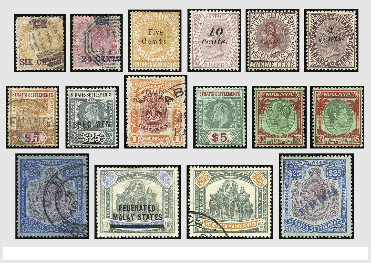 ENGELSE KOLONIËN, Maleisië, Straits Settlements 1867-1940, o/*/** met vele zeer goede nrs. en series o.a. S.G. 1/9, 20/21, 46, 80, 84, 105, 139 Specimen, 141/51, 165/67, 213 met cert. RPS, 168 Specimen, 260/74, Fed.States 13. Pracht verzameling op insteekbladen