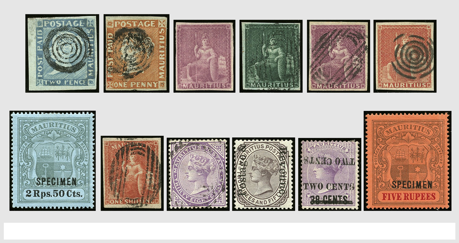 ENGELSE KOLONIËN, Mauritius 1848-1966, o/*/** verz. op insteekbladen met o.a. S.G. 14 (fraai ex. met cert.), 27/29, 98, 162, etc. Hoge cat.wrd.
