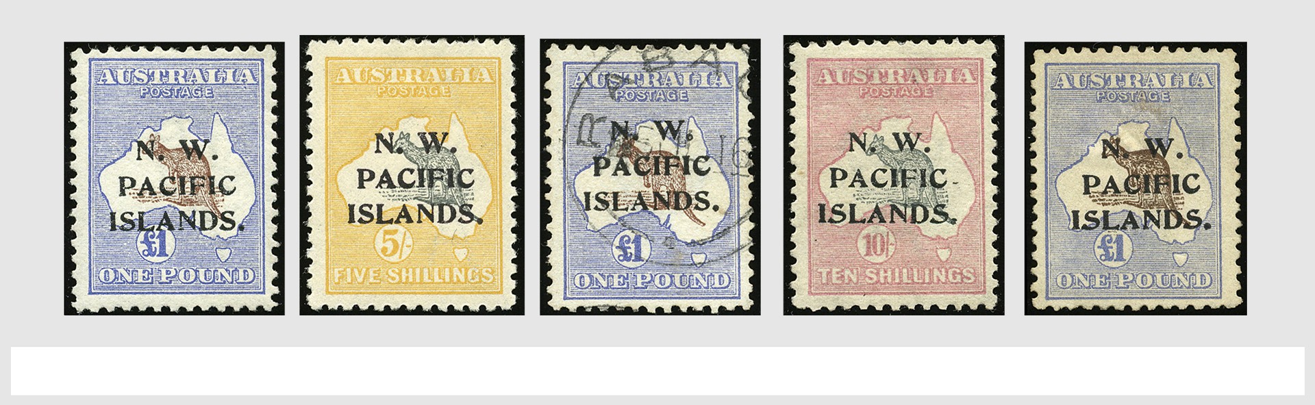 ENGELSE KOLONIËN, N.W. Pacific Eil. 1915/1922, o/* verz. op insteekblad met o.a. S.G. 84/85 en 99, tevens enkele opdrukvariëteiten