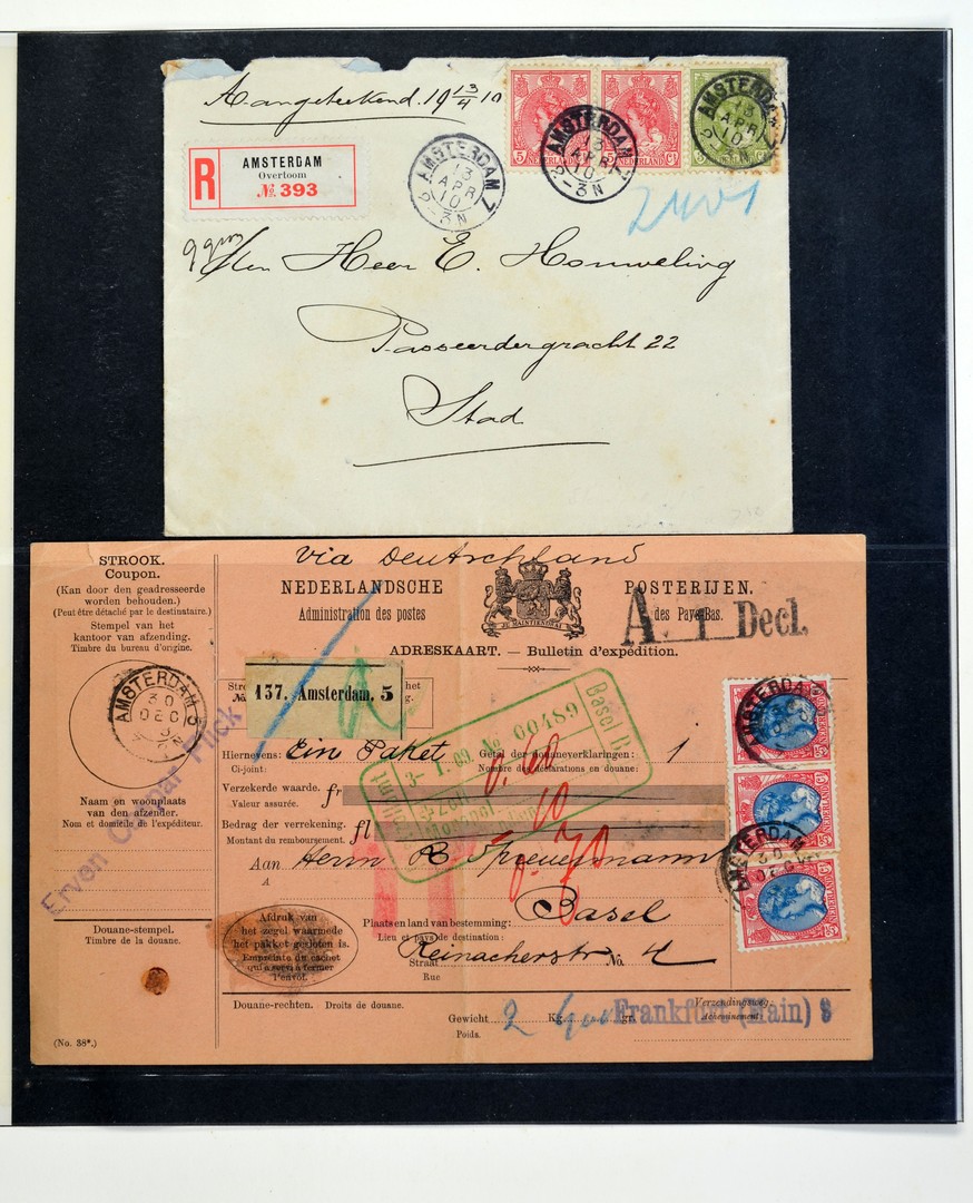 Emissies Vürtheim en Bontkraag afgestempeld met kleinrond, grootrond, kortebalk en langebalk in verschillende typen, bestellersstempels, bijzondere stempels, etc. uitgezocht en onuitgezocht, op honderden losse zegels (mogelijk ook interessant voor plaatfouten!) en 53 poststukken w.o. (enkel)frankeringen, omslagbandjes, monsterzakje, etc., in 2 Lindner-ringbanden