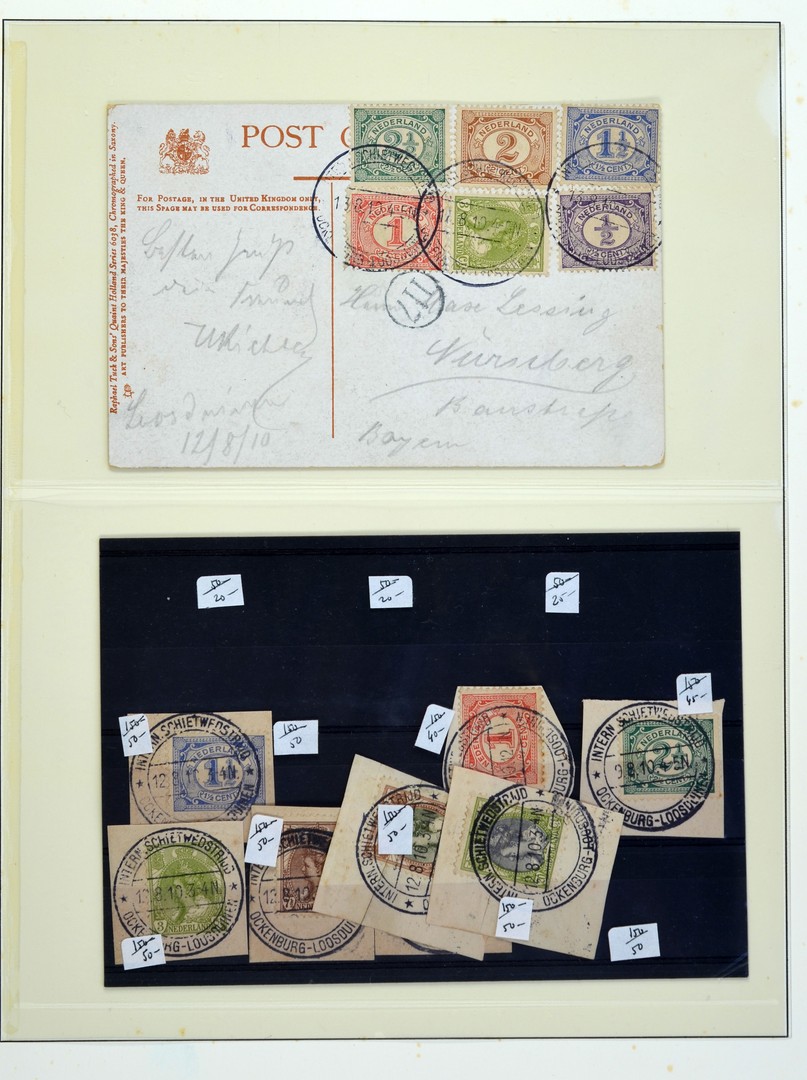 POSTHISTORIE, Gelegenheidsstempels, verzameling van ruim 90 poststukken gefrankeerd met emissies Vürtheim en/of Bontkraag en vele zegels w.o. op briefstukjes uit de jaren 1906-34 o.a. Vredesconferentie 1907, E.N.T.O.S., diverse Philatelistendagen, Bloemententoonstellingen, Schietwedstrijd, De Vrouw, etc. in 2 Lindner-ringbanden. Mooi object om op te zetten en uit te breiden