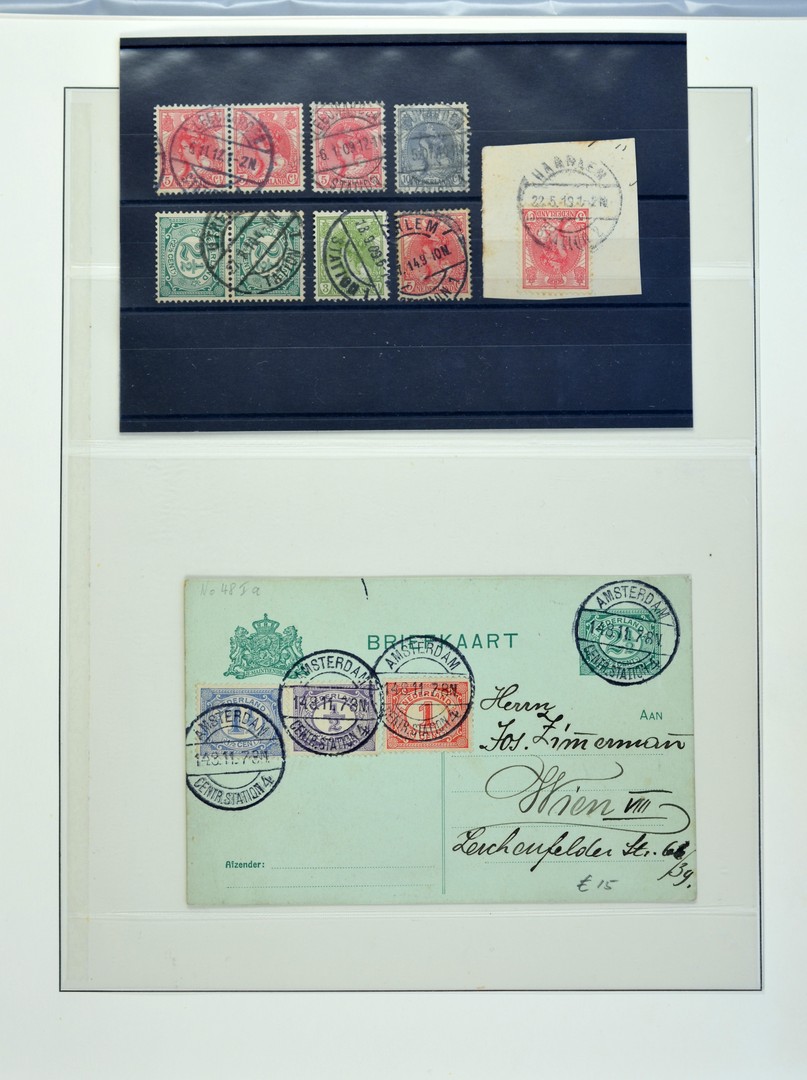 POSTHISTORIE, Stationsstempels van diverse typen als kleinrond, grootrond, korte- en langebalk, proefstempels, etc. op 71 poststukken gefrankeerd met emissies Vürtheim en/of Bontkraag, alsmede op losse zegels en op knipsels, veel mooie afstempelingen
