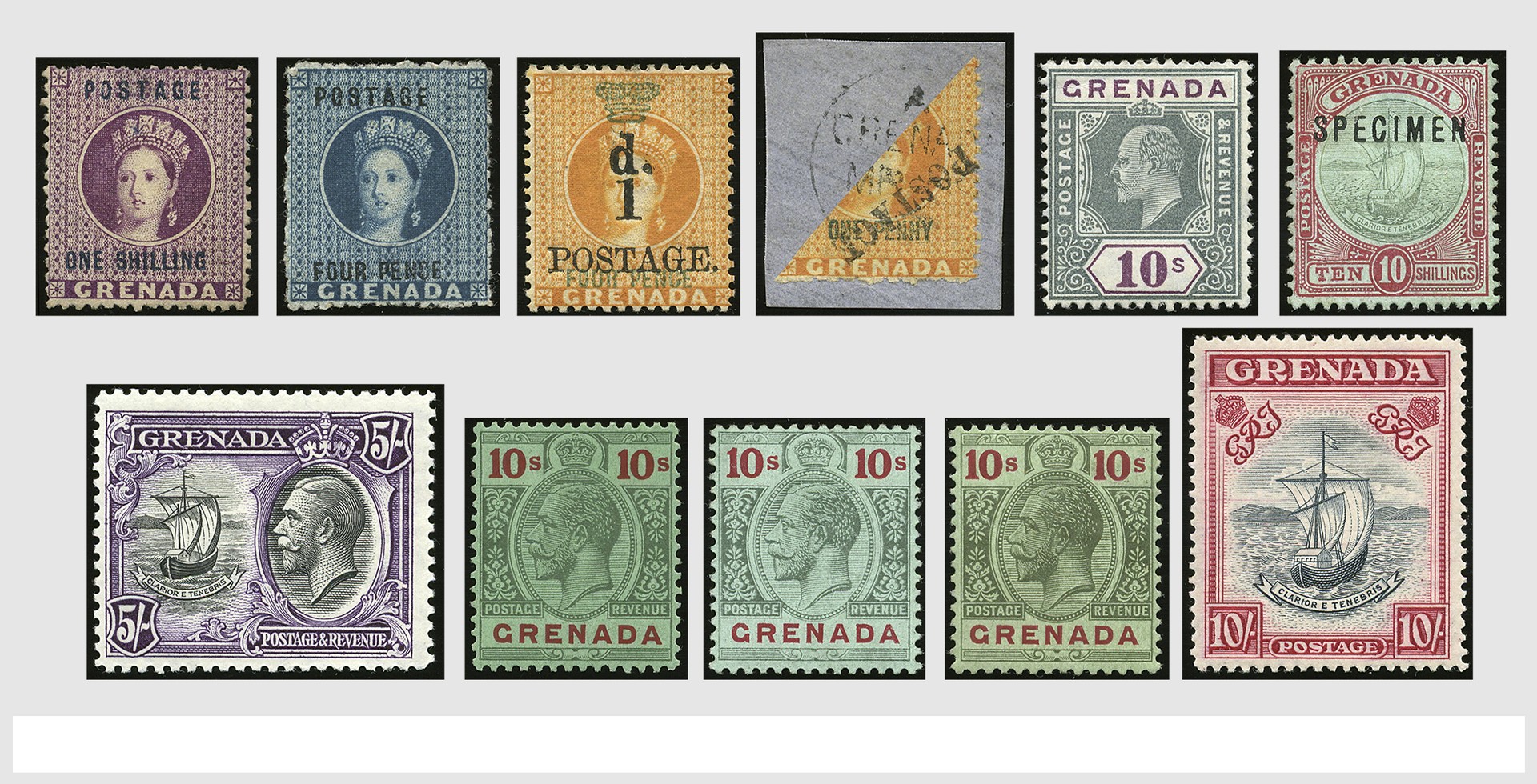 ENGELSE KOLONIËN, Grenada 1861-1960, o/*/** verzameling in insteekboek, met een mooie selectie oudere emissies en beter materiaal o.a. S.G.23, 29, 39, 77/88, 89/101, 101, 121/34, 135/44, 163 (7 x met kleur- en tandingvariëteiten), 192/204, etc. Hoge cat.wrd.!