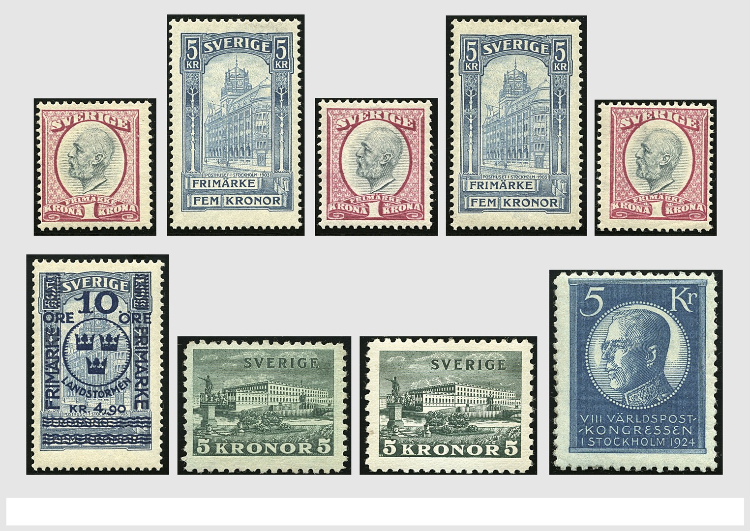 ZWEDEN 1858-1968, ongebruikte resp. postfrisse zegels en series, vrijwel uitsluitend betere nrs., wb. goed klassiek, UPU en Wereldcongres-series, 5 Kr. postkantoor (ex.), Gustav en 3-Kronen-uitg., etc., etc. De cataloguswaarde bedraagt ruim Sek.140.000 (= € 14.000 +)