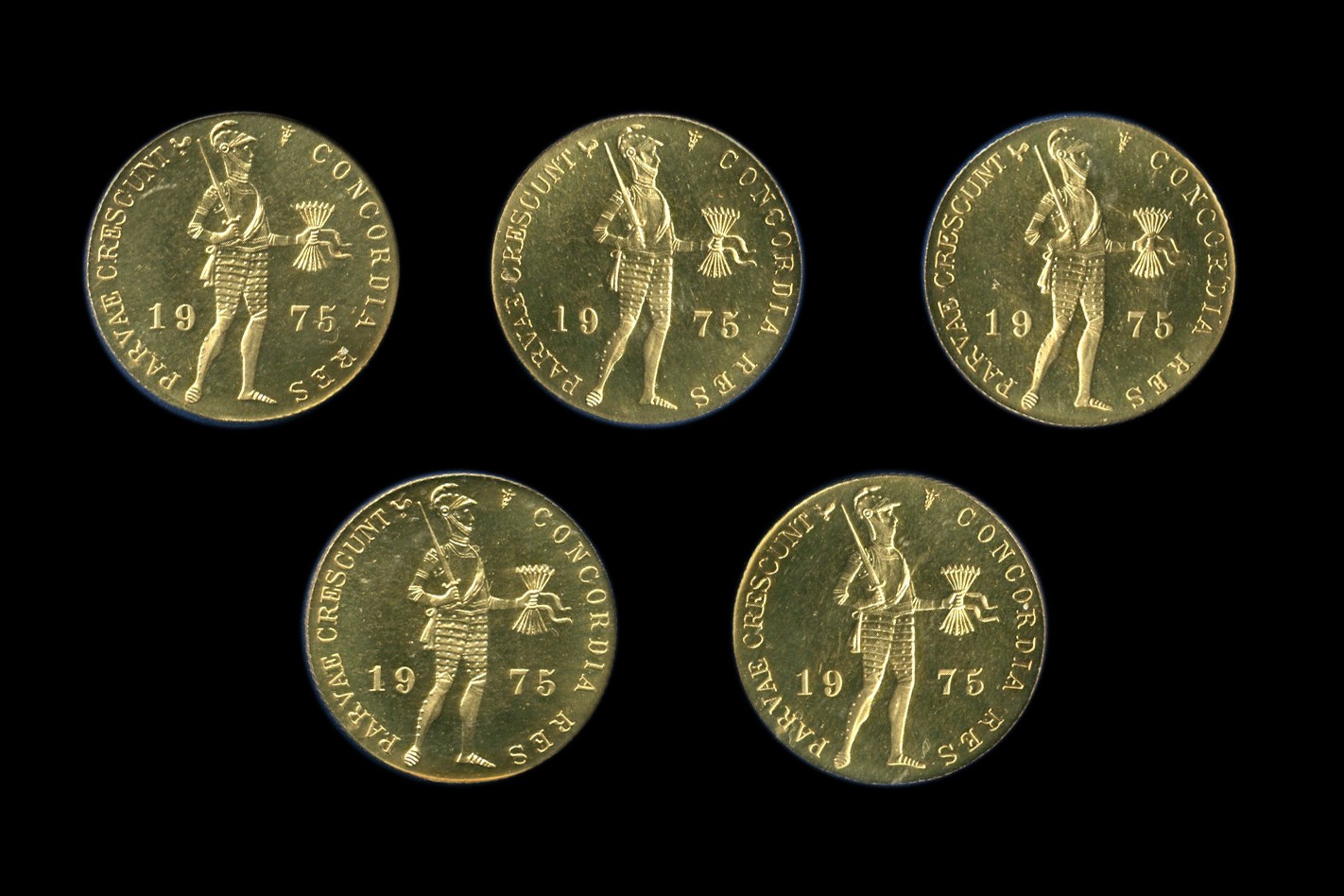 NEDERLAND, 5 x Gouden Ducaat 1975 zfr./pr.