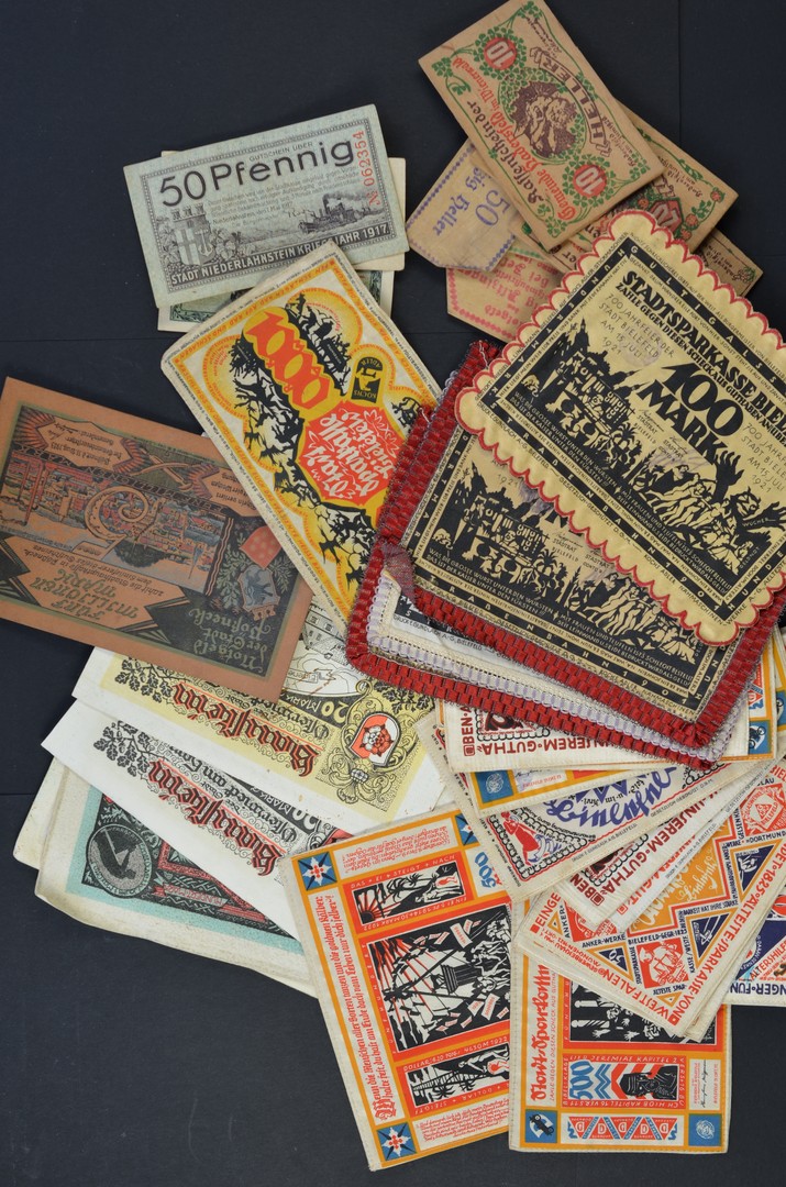 DUITSLAND, Linnengeld tussen 50 en 1000 Mark (27 verschillende), alle in nette kwaliteit, hoofdzakelijk Bielefeld, alsmede iets Oostenrijk kartonnen Noodgeld o.a. Hadersfeld