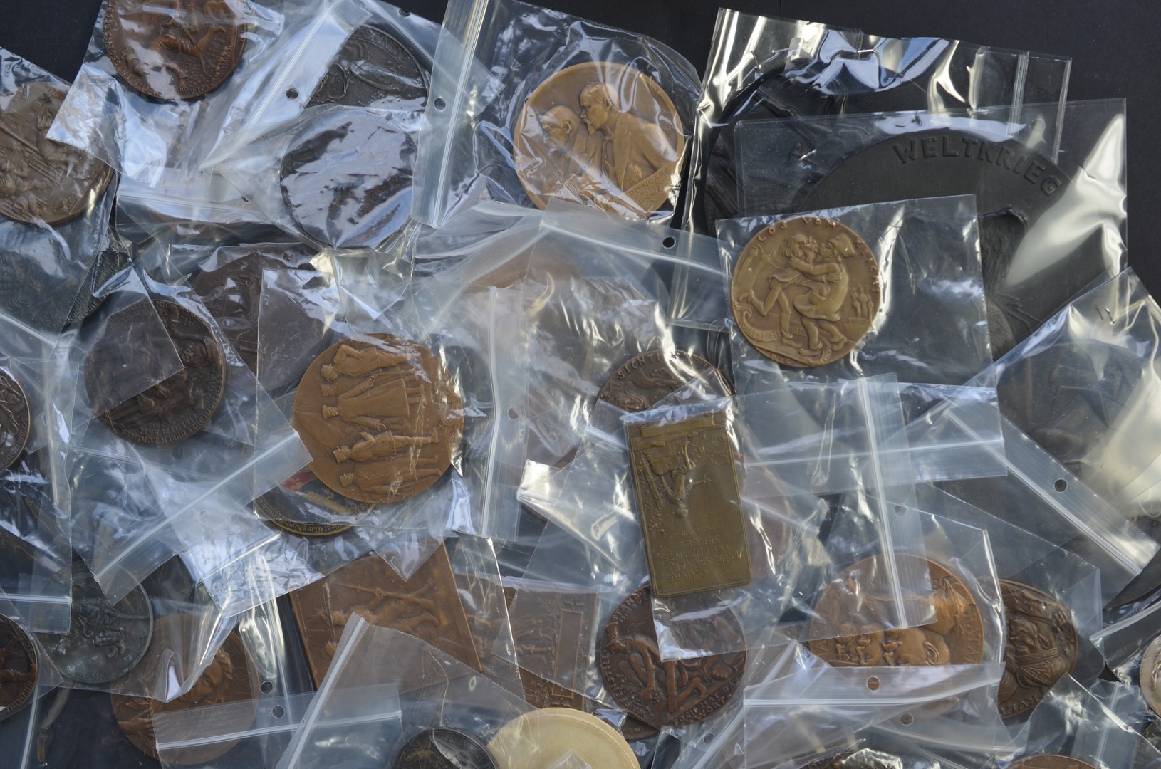 DUITSLAND, Penningen, hoofdzakelijk met betrekking tot 1e Wereldoorlog o.a. div. van Karl Goetz waarbij betere, alsmede enkele Franse en Nederlandse penningen. Goed bezichtigen!!
