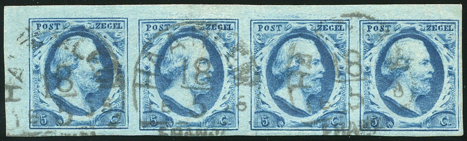 1j-Pl.III-76/79. Zeer breed gerande luxe hoekstrip van vier met Haarlem C