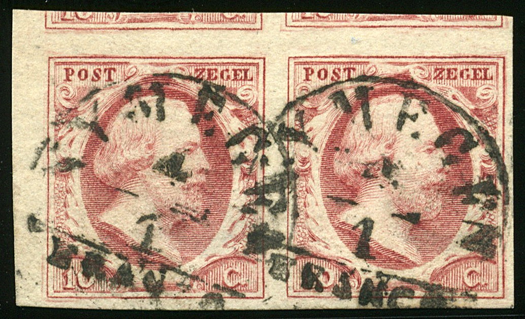 NYMEGEN A (EY.50) op 10 cent nr. 2e-Pl.III-16/17. Overrandig randpaar met mooie afst. op elke zegel