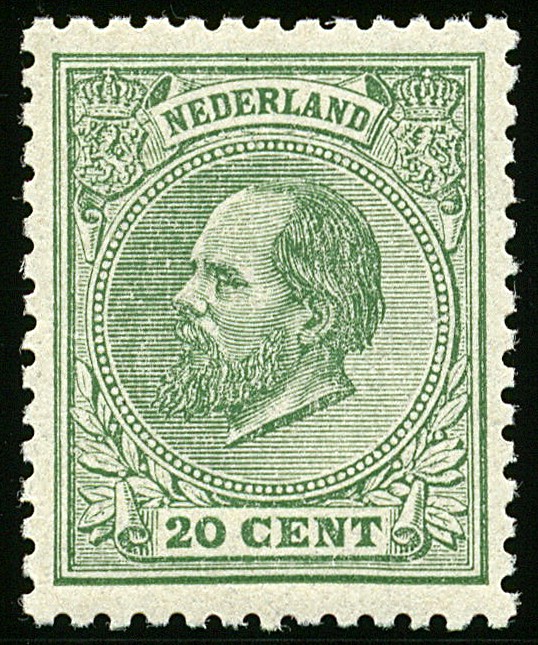 24K, 20 cent groen, Kt.12½ kl.g., postfris, origineel bruin gomstreepje, luxe van kleur en perfect gecentreerd met cert. Vleeming (2015) € 5025