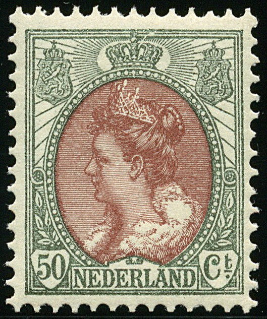 74, 50 cent bronsgroen en bruinrood, postfris prachtex. € 550