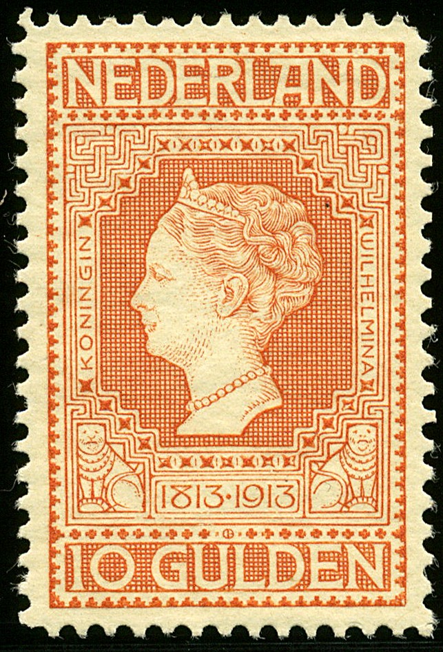 101, 10 gulden roodoranje, postfris prachtex. met oud fotocertificaat Sturms (1976) € 2250