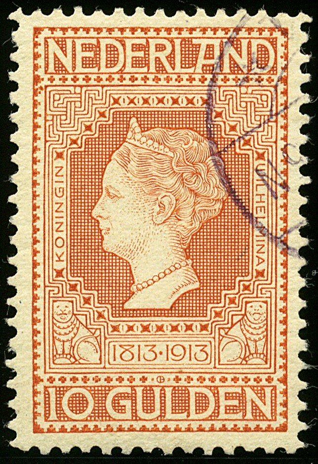 101, 10 gulden roodoranje, kopvrij gestempeld prachtex. € 900
