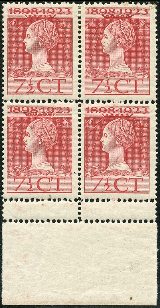 123H, 7½ cent los en in blok van vier, 124G los, 124H los alsmede 126D los, alle met tandingvariëteiten zoals dubbele perforatie in onderrand