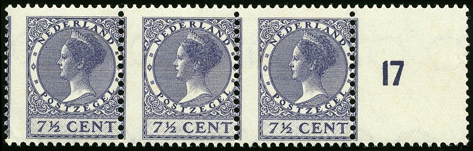 179, 7½ Cent Veth in postfrisse randstrip van drie met verschoven verticale perforatie