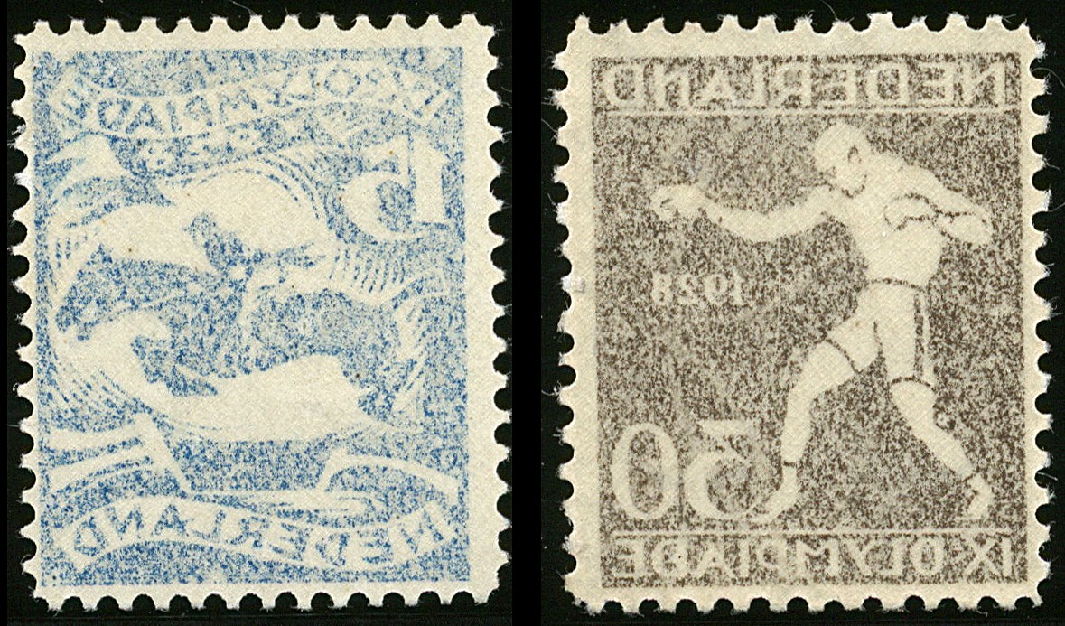 218/19, Olympiade 1928, 15 cent en 30 cent beide met spiegeldruk, ongebruikt prachtex. resp. prachtex. afgestempeld Breda (info HPN bijgevoegd)
