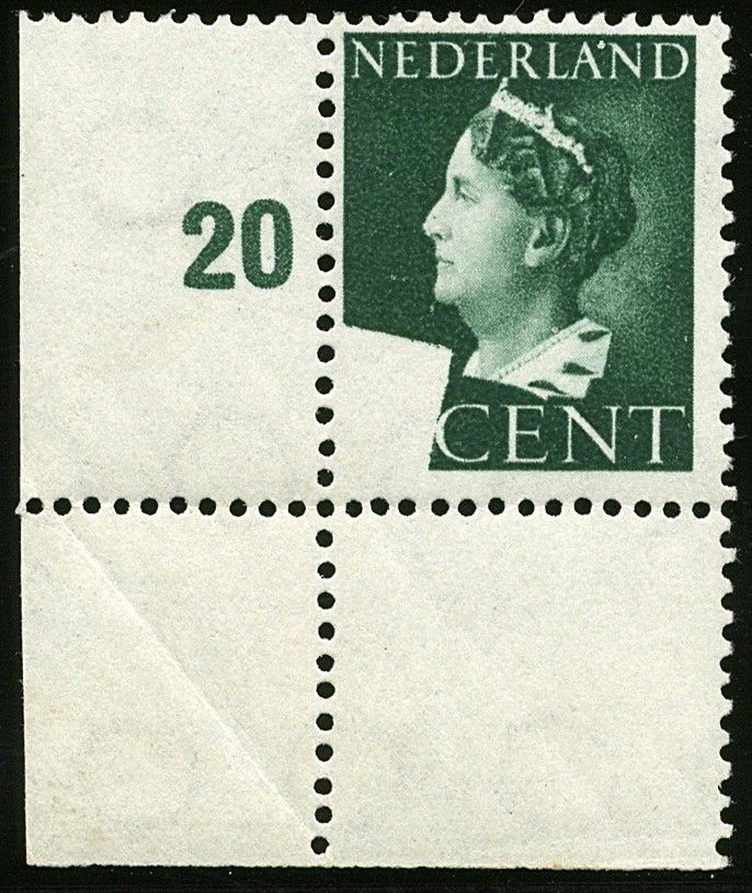 332, 5 Cent gedeeltelijk onbedrukt, postfris hoekstuk