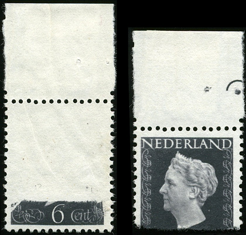 475, 6 Cent met papierlas, ongebruikt ex. zonder gom met velrand waarin deel markeerboogje