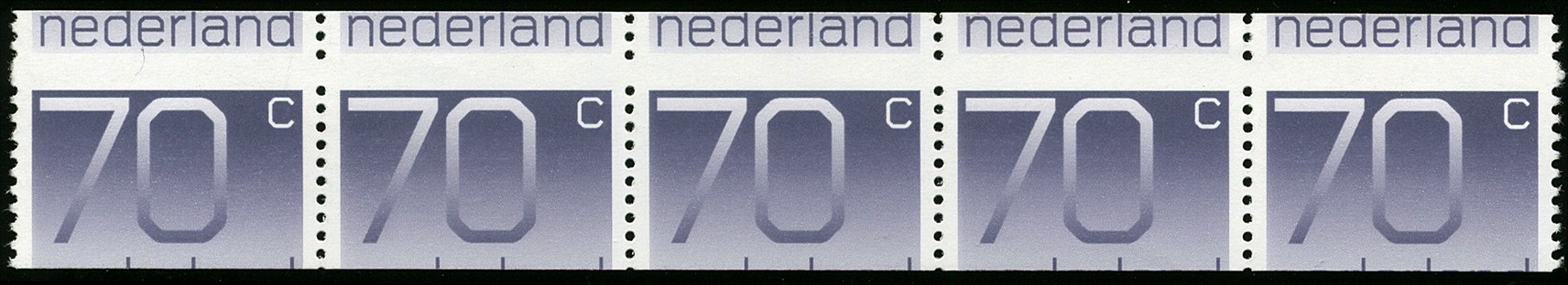 1117A, 70 Cent Crouwel in versneden strip van vijf, alsmede in iets minder versneden strip van drie