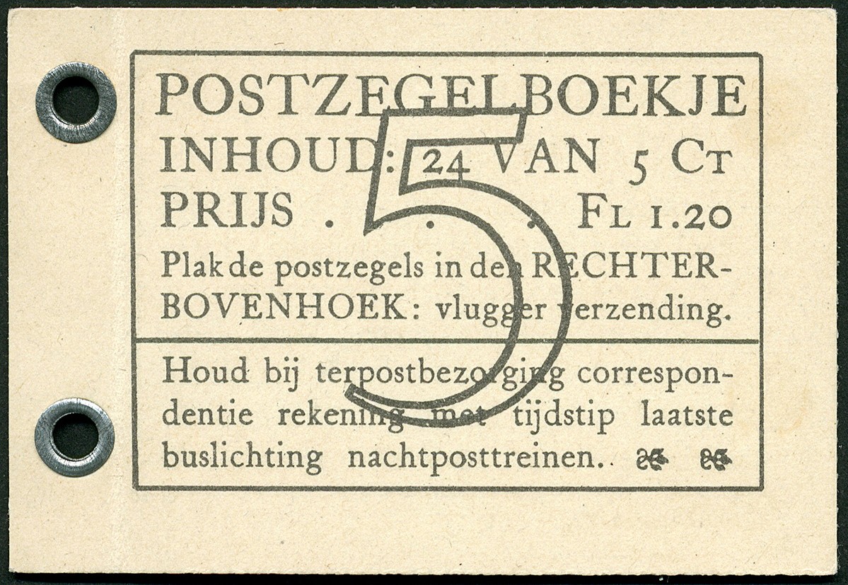 43a, Fl.1,20 boekje met 4 maal 6 zegels 5 cent groen nr. 332, met ringetjes, kaft boekje is aan vz. opengevouwen geweest. € 230