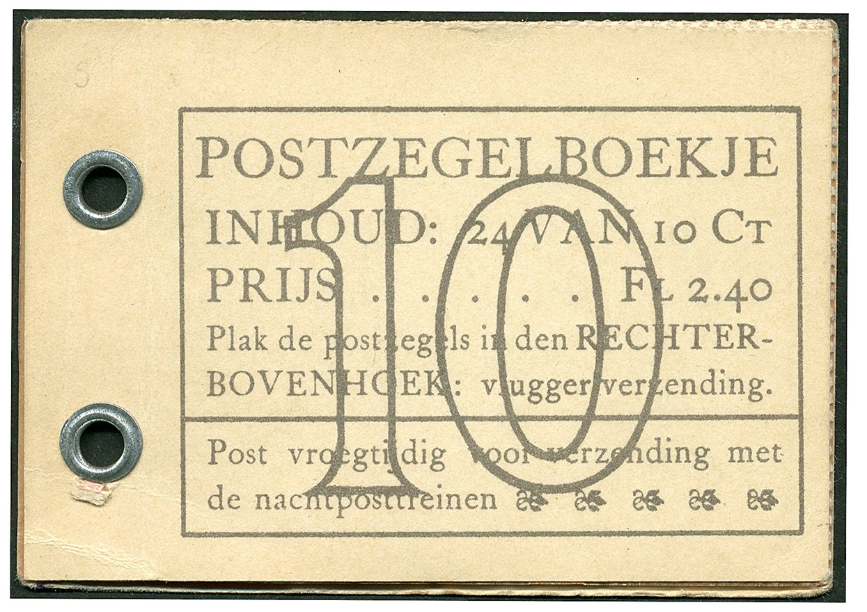 54, Fl. 2,40 boekje met 4 maal 6 zegels van 10c violet nr. 478, Horn 54B, schutbladvariant gA