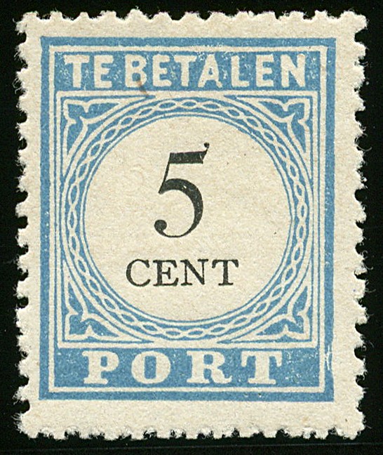 6DIII, 5 cent lichtblauw en zwart, Kt.12½, origineel vezeltje en uigevallen papierpuntje, ov. postfris fris zegel zonder gebreken met cert. Vleeming (2016) € 1100