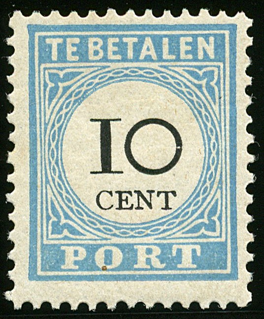 7BIII, 10 cent lichtblauw, Kt.12½ x 12, type III, postfris prachtex. met cert. NKD (2015) € 1200