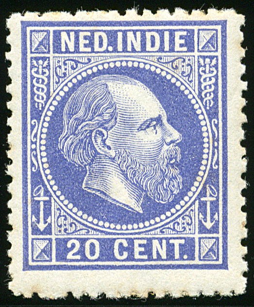 12A, 20 Cent ultramarijn in lijntanding 14 kl.g. Postfris vrijwel prachtex. met volle, originele gom en op az. op tandje onder, nauwelijks zichtbaar miniem bruin puntje, overigens zeer fris van kleur. € 975