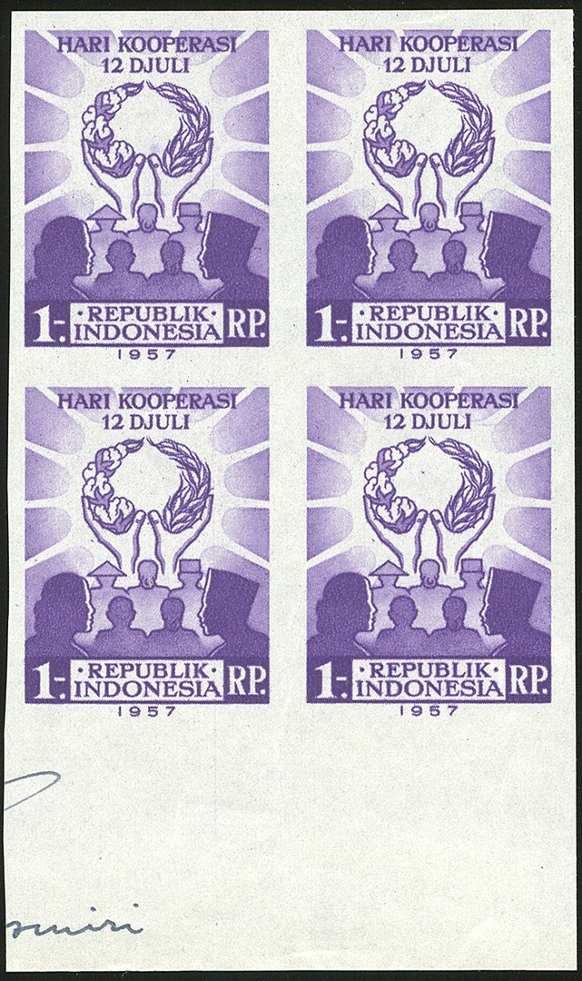 KPI.200A/203A, Dag van de Samenwerking 1957, ongetand en ongegomd in randblokken van vier. Rp. 16.000.000