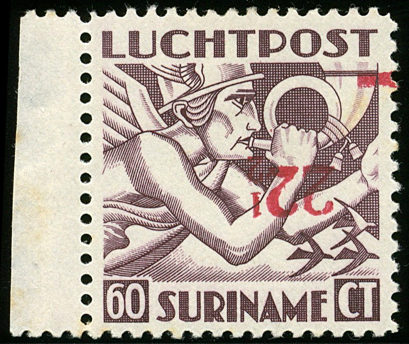 LP24fa, 22½ op 60 cent donkerlila, met kopstaande opdruk, 3 stuks , ongebruikte zeer fraaie tot prachtex., alle met cert. NVPH € 1200