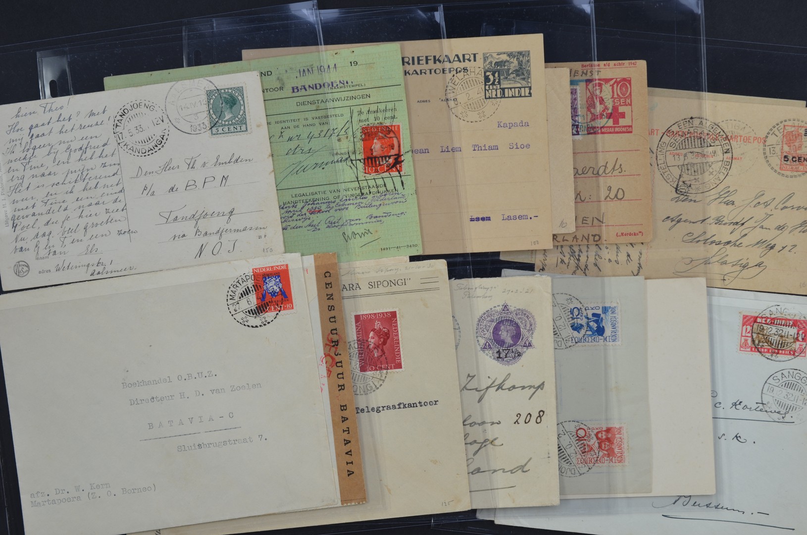 NED.- INDIË POSTHISTORIE, 17 betere poststukken 1921-47 w.o. met schaarse langebalk Padangan, Sanggau, Sindang-/Laoet, Tandjoeng-/Kendangan, Telawa, etc. en meerdere ex Van Affelen van Saemsfoort