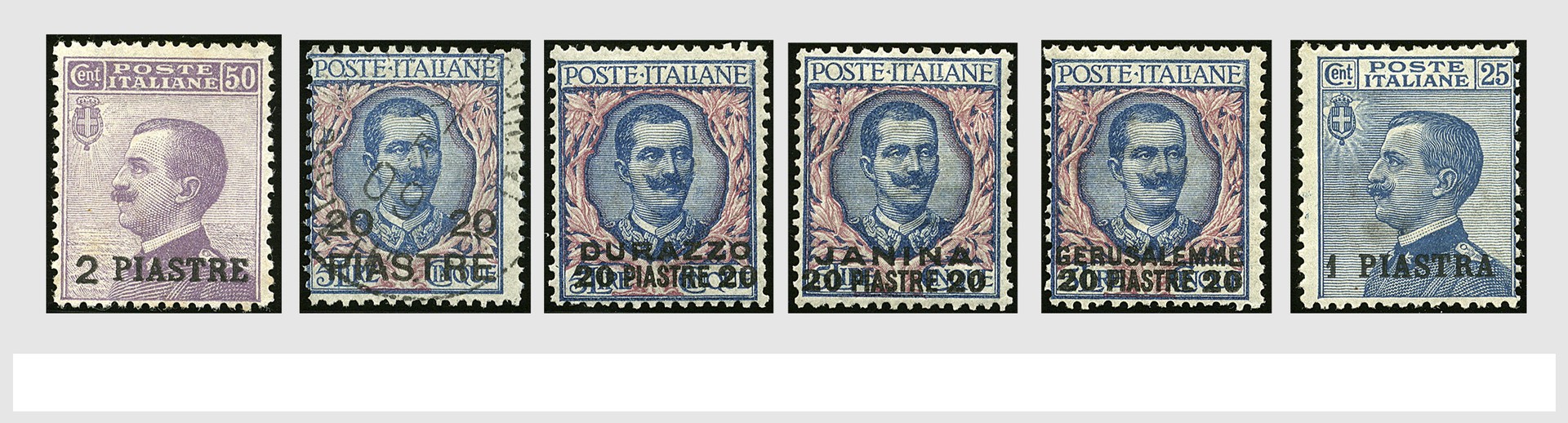 ITALIAANSE LEVANT o/* collectie met doubletten op insteekbladen met div. goede nrs. en series