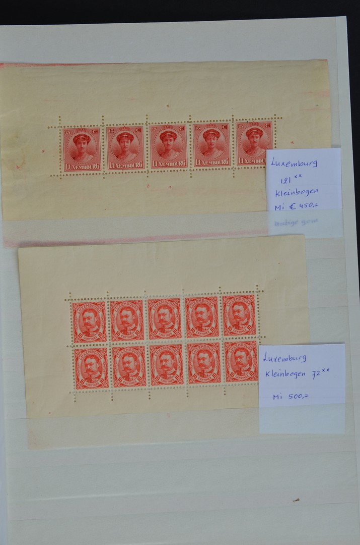 LUXEMBURG, o/*/** op insteekbladen wb. o.a. nrs. 72 en 121 in zgn. kleinbogen, enkele betere blokken en serie Intellectuelen (helaas met verzoekstempels), etc. Zeer hoge cat.wrd!