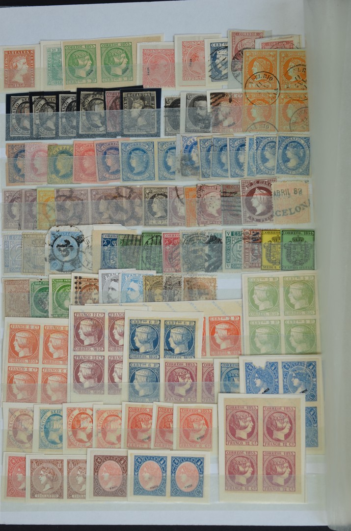 SPANJE, prachtige voorraad met brieven, ongetand, proeven en veel "Back of the Book" op insteekbladen. Bezichtiging aanbevolen