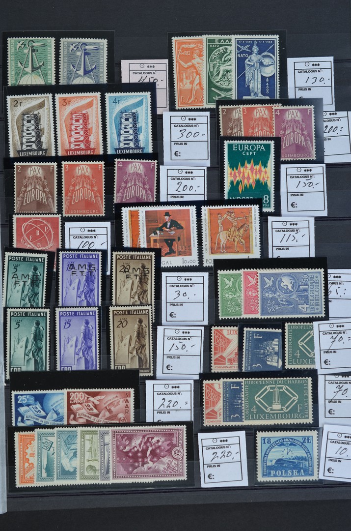 VERENIGD EUROPA en MEELOPERS, meest postfrisse partij met veel goede nrs. en series waaronder Luxemburg, Portugal, Italië, Griekenland, Saar, Duitse Rijk (Ostropa blok zfr.) etc. Met hoge cataloguswaarde!